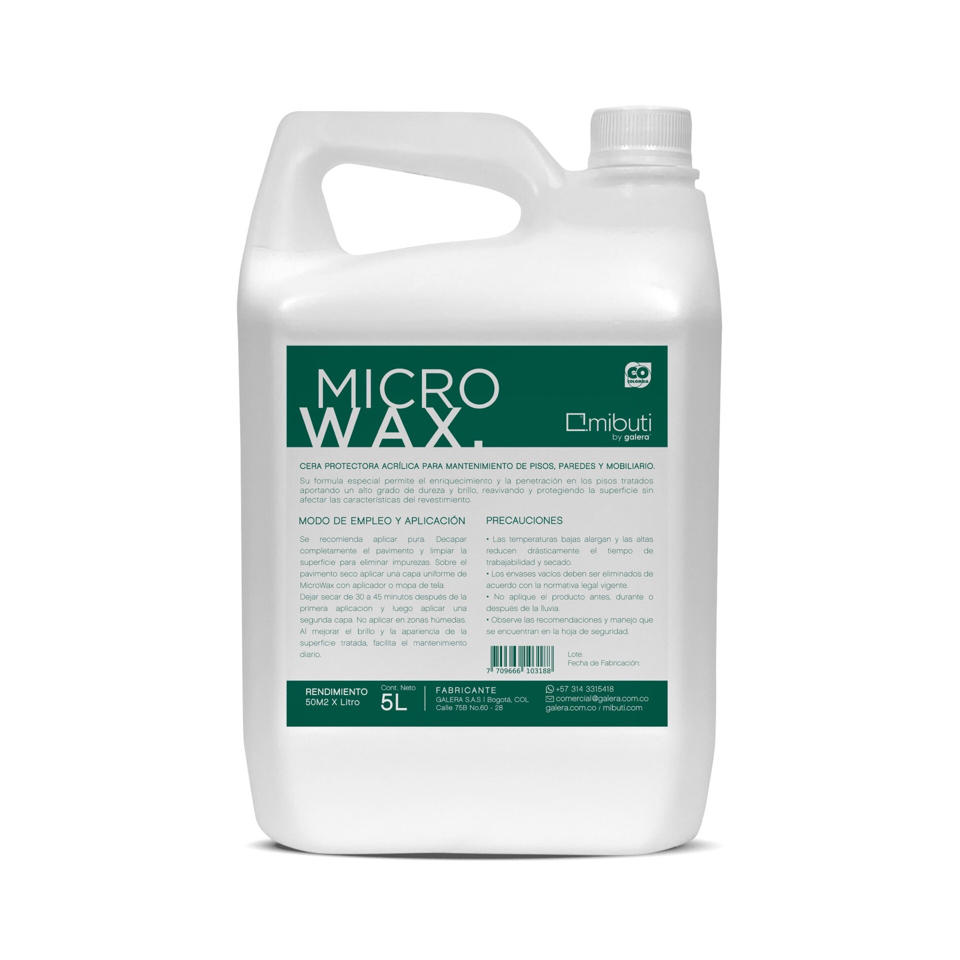 MicroWAX es una cera protectora acrílica especialmente formulada para el mantenimiento de pisos, paredes y mobiliario. Su composición permite enriquecer y penetrar en las superficies tratadas, proporcionando un alto grado de dureza y brillo. Además, reaviva y protege los revestimientos sin alterar sus características originales. MicroWAX está diseñada para suelos de cemento, superficies porosas o desgastadas, mejorando notablemente su apariencia y facilitando el mantenimiento diario. Para una correcta aplicación, se recomienda utilizar el producto puro, asegurándose previamente de decapar completamente el pavimento y limpiar la superficie para eliminar cualquier tipo de impureza.